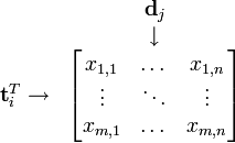 where the rows are term vectors, and the columns
