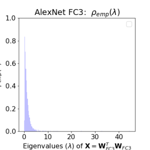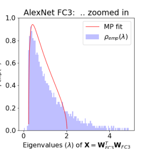 The red curve is a fit of the ESD to the Marchenko Pastur (MP) Random Matrix Theory (RMT) result — it is not a very good fit. This means ESD does not resemble Gaussian Random matrix. Instead, it is looks heavy tailed. Which leads to the question…