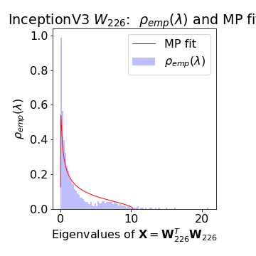 A counter example is Inception V3. Both FC layers 226 and 302 have unusually large exponents. Looking closer at Layer 222, the ESDs is not a power law at all, but rather bi-model heavy tailed distribution.