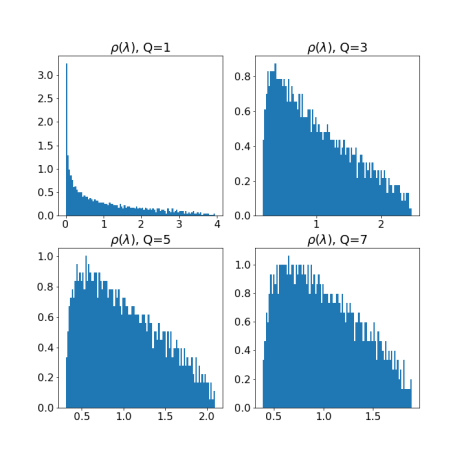 Notice that the shape of the ESD depends only on Q, and is tightly bounded; there is, in fact, effectively no tail at all to the distributions (except, perhaps, misleadingly for Q=1)