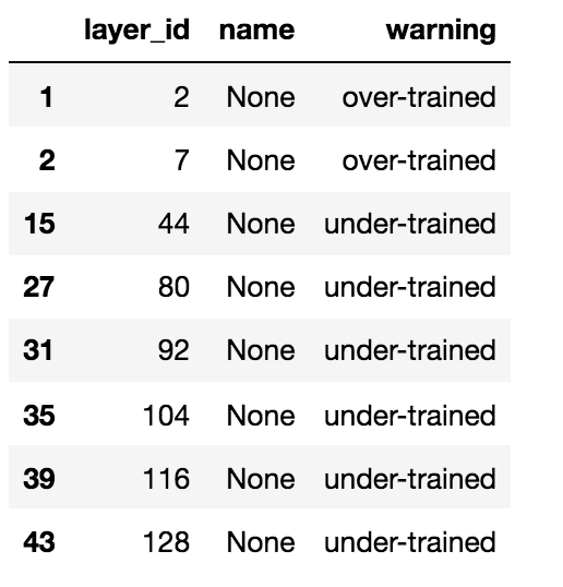 That’s all there is to it. WeightWatcher provides simple layer metrics for pre-trained Deep Neural Networks, indicating simple warnings for which layers are over-trained and which layers are under-trained.